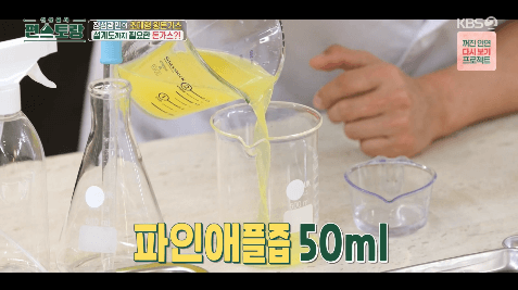 5. 생강즙 10ml를 넣고 골고루 섞어줍니다. 분무기에 넣고 고기에 뿌려줍니다.