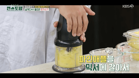 1. 파인애플을 믹서에 갈아줍니다.