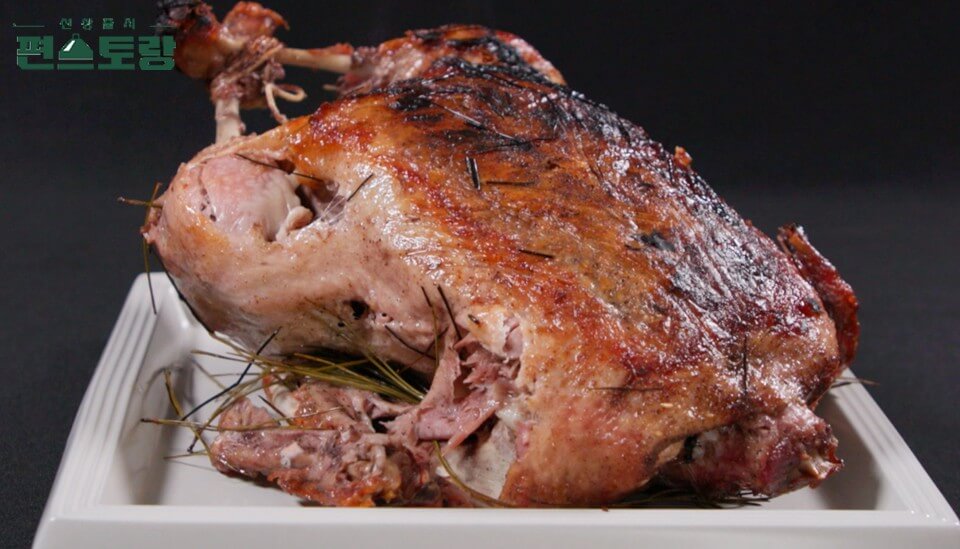 15. 다 구운 오리를 화로에서 꺼낸 뒤 약 30분간 잔열로 더 익을 수 있도록 놔둡니다.