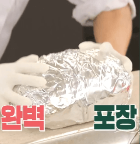 9. 알루미늄 포일로 오리를 감싸줍니다.