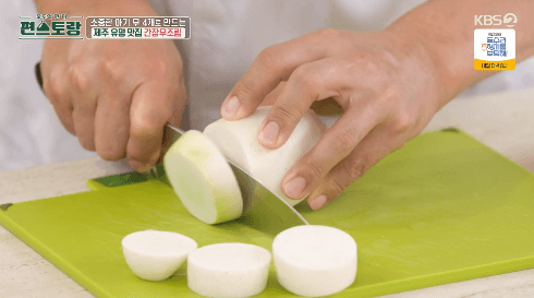 2. 무를 2~3cm 두께로 썰어줍니다.