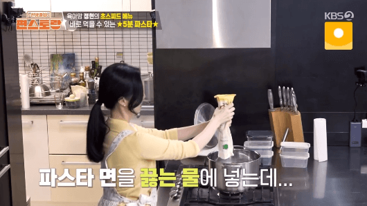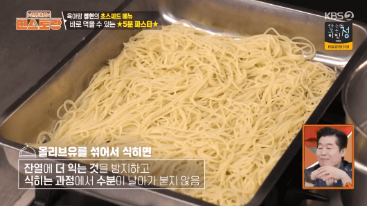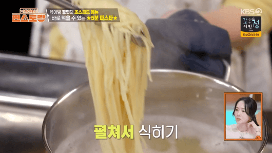 파스타를 만들 때 면을 미리 삶아뒀다 파스타 요리에 바로 사용할 수 있는 방법을 이정현씨가 알려준다고 합니다. 그리고, 미리 삶아 놓은 면으로 금방 만들 수 있는 파스타 요리법도 알려준다고 합니다.