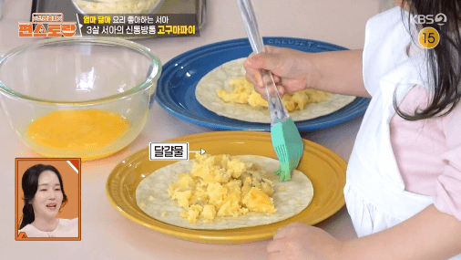 토르티야를 사용해서 간편하게 파이 만들어볼게요. 방송에서는 이정현씨가 딸아이와 같이 만들었어요. 아이들도 만들 수 있을 만큼 쉽고, 맛있어요.