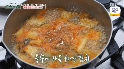 5. 멸치육수 1.8리터에 김치를 넣고 강불에 10분 끓입니다.