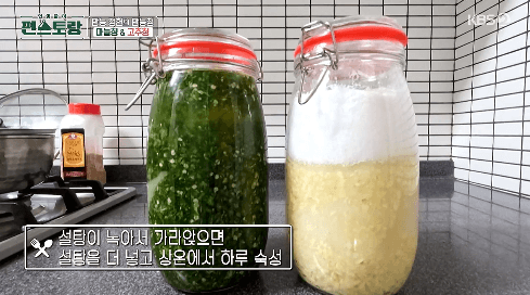 신상출시 편스토랑 | 만능여신 이정현의 만능청 등장★ 초간단 한식 치트키 고추청&마늘청! 요리가 편해져요! ■ 요리 재료 깐마늘 2kg, 설탕 2kg / 청양고추 2kg, 설탕 2kg ■ 만드는 법 [마늘청 만들