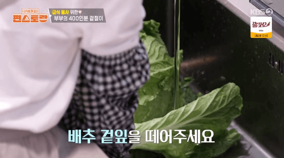 1. 배추의 시든 겉잎이나 흙 묻은 잎은 떼어냅니다. (겉잎을 모아 우거지로 사용하면 좋습니다.)