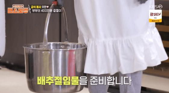 7. 절이는 중간에 한 번 뒤적여줍니다.