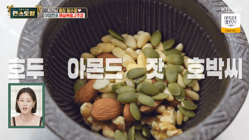 1. 잣 4큰술, 호두 16조각, 아몬드 20알, 호박씨 1~2큰술을 다져줍니다.