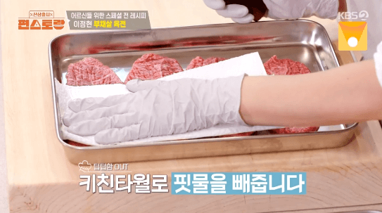 3. 키친타월로 고기의 핏물을 제거합니다.