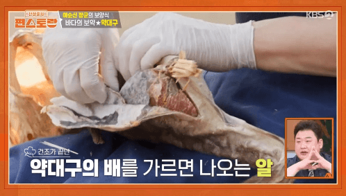 1. 약대구의 검은색 껍질 안쪽에 있는 알을 발라냅니다.