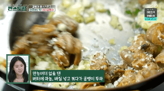 10. 미리 만들어 놓은 만능버터가 없다면, 버터에 마늘과 바질을 넣고 볶다가 골뱅이를 넣고 볶아줘도 된답니다.