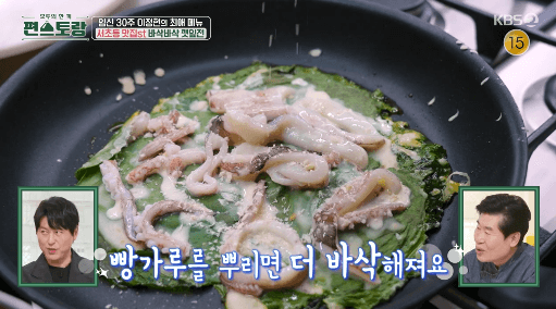 깻잎전도 만드는 레시피가 여러 가지겠죠?! 이정현씨가 오징어가 들어간 이정현씨의 단골집 스타일 깻잎전을 만든다고 합니다. 맛있게 만들어서 집에서 맛집 메뉴 즐겨보세요.