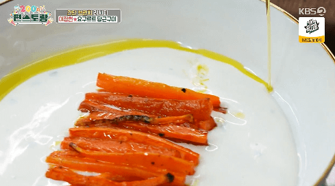 신상출시 편스토랑 | 만능여신 이정현의 요구르트 당근구이! 자투리 당근이 요구르트 소스와 만나 근사한 브런치로 변신 ■ 요리 재료 당근 100-120g, 소금 3꼬집, 후추 약간, 올리브오일 2T, 파슬리