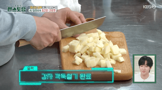 이번 방송에서는 이정현씨가 이런저런 간식거리를 만들었습니다. 미숫가루빵, 당근 케이크, 크로켓, 무수분 밥솥카레, 아스파라서스 김치. 방송을 보면서 내내 맛있겠다는 생각을 했습니다. 그리고, 정말 만들어 먹고 싶다는 생각이 들었는데요. 그중에서도 생각만 해도 군침 도는 크로켓을 이정현씨의 레시피로 만들어 보겠습니다. 아, 그런데, 이정현씨가 학교 공부로 바쁘셔서 대신 남편분이 요리하시네요. 식빵을 활용해서, 간편하게 만드는 크로켓 만드는 방법 알아보겠습니다.