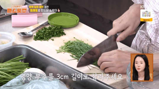 1. 영양부추를 3cm 길이로 썰어서 볼에 담습니다.