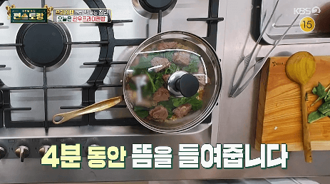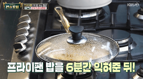 16. 다시 프라이팬 뚜껑을 닫고 4분간 뜸을 들여줍니다.