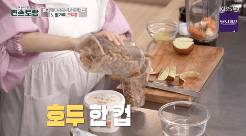 9. 식감을 위해 호두 50ml를 다져줍니다.