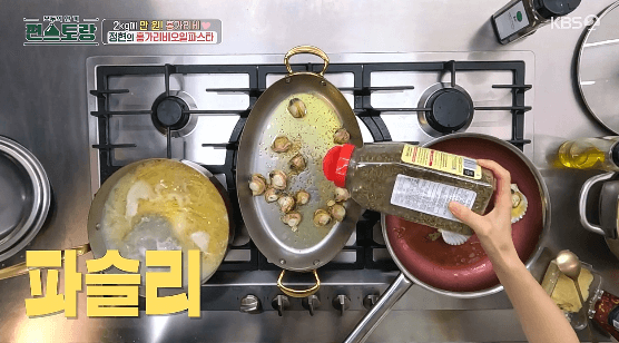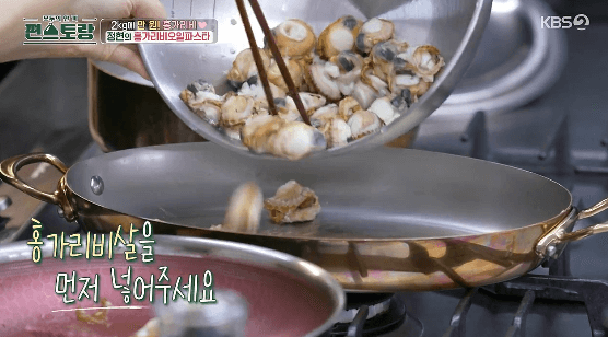 이정현씨가 홍가리비 2Kg을 찌고, 반은 홍가리비 구이를 만들고, 또 반절은 오일파스타를 만들었습니다. 그리고, 홍가리비를 몇 개 남겨서 라면도 끓였습니다. 이전 포스팅에서는 홍가리비를 손질하고, 찌고, 구이를 만드는 과정을 알아봤습니다. 이번에는 찐 홍가리비를 이용해서 오일파스타를 만드는 과정을 알아보겠습니다.