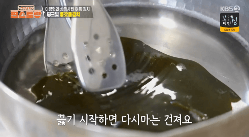 6. 끓기 시작하면 다시마는 건져냅니다.