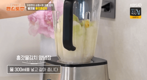 11. 무 1/2개, 마늘 3알, 생강 1/2개, 물 300ml를 넣고 믹서기를 갈아줍니다.
