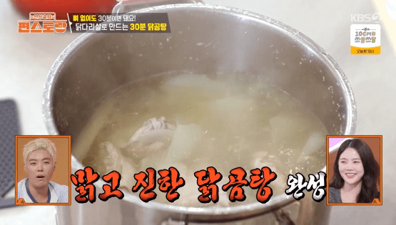 이번 주 편스토랑 우승 메뉴인 닭곰탕을 끓여보세요. 몸에 좋은 재료들을 가득 넣어서 끓였습니다. 흔히들 강황이라고도 하는 울금을 넣어서 한층 더 건강한 맛의 국물도 만들어 보세요. 울금