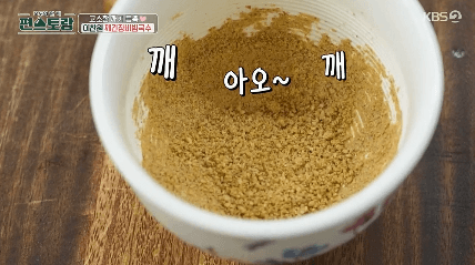 1. 통깨 2큰술을 절구에 넣고 곱게 으깨줍니다.