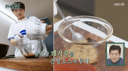 4. 갈아 놓은 깨를 소스에 넣고 골고루 섞어서 양념장을 만듭니다.