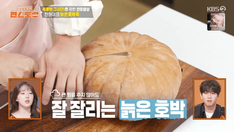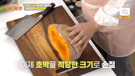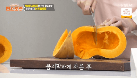 7. 늙은 호박은 적당한 크기로 썰어줍니다.