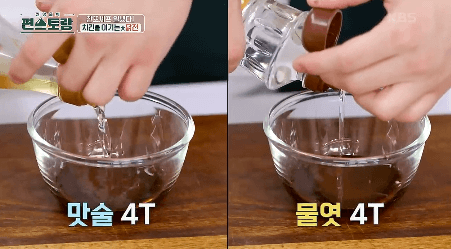 1. 볼에 진간장 4큰술, 맛술 4큰술, 물엿 4큰술을 넣습니다.