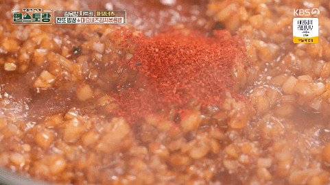 9. 고춧가루 1큰술을 넣고 재료들을 볶아줍니다. (기호에 따라 고춧가루 양은 조절하세요.)