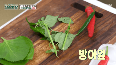 19. 방아잎, 깻잎을 넣습니다.