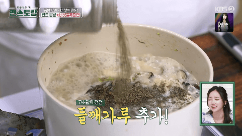 8. 들깻가루 1큰술을 넣고 저으면서 풀어줍니다.