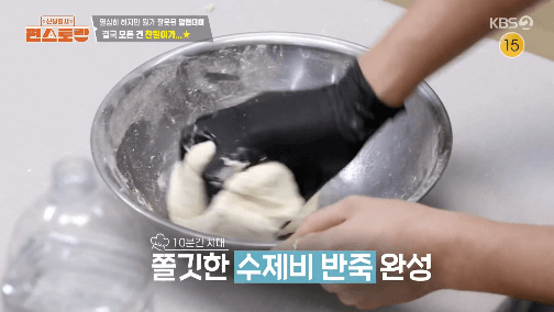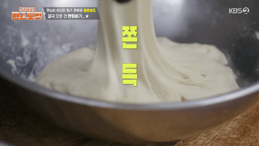 4. 30분 후 쫀득한 반죽 상태를 확인합니다.