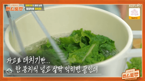 간단하게 먹을 수 있는 반찬 만들어 보겠습니다. 얼갈이를 데쳐서 무쳐보겠습니다. 이찬원씨가 추어탕과 같이 먹으려고 만든 건데. 추어탕이 없어도, 밥반찬으로 좋을 것 같아요. - 이찬원의 복
