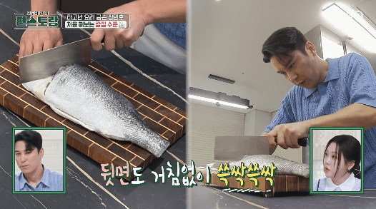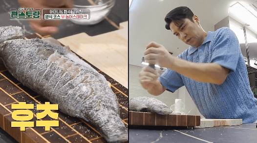 여름이 제철인 농어를 맛있게 구워서 스테이크를 만들어 보겠습니다. 장민호씨가 요즘 요리에 아주 푹 빠져서 자격증 공부까지 한다고 하는데요. 요리하는 게 너무 재미있나 봐요. 장민호씨가 어머니를 위해서 요리입니다. 맛있는 생선구이 만들어 보세요.