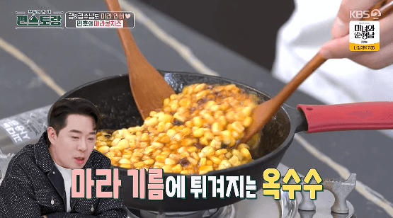 콘치즈 많이들 좋아하는데요. 먹다 보면 조금 느끼한 감이 있습니다. 이런 느끼함을 잡고, 더 맛있게 먹을 수 있는 마라콘치즈 만드는 방법을 알아보겠습니다. 기존의 콘치즈에 마라소스를 활용하면 됩니다. 맛있는 콘치즈를 더 맛있게 만든 마라콘치즈를 MZ입맛의 소유자 장민호씨한테 배워볼게요.