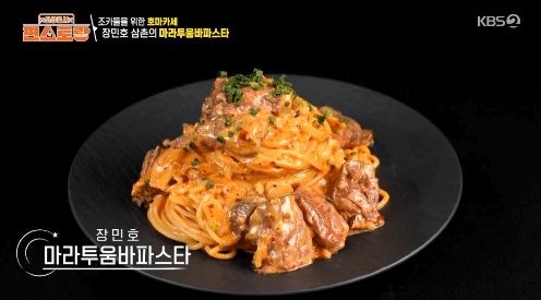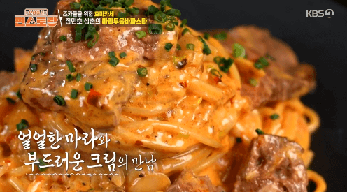 마라를 넣어 느끼하지 않으면서 매콤하고 맛있는 파스타를 만들어 보겠습니다. 장민호씨의 철판 스테이크 레시피를 참고해서, 스테이크를 미리 굽거나 베이컨을 준비해 주세요.
