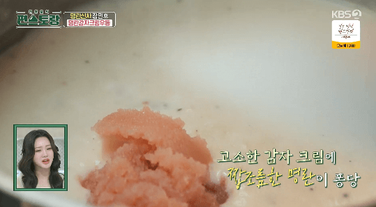 7. 명란을 감자크림에 넣고 섞어줍니다.