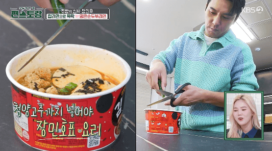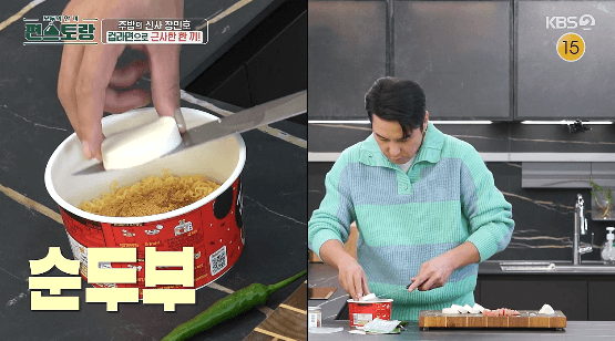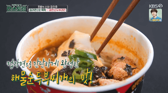 장민호씨는 컵라면과 다른 재료들을 활용해서 업그레이된 라면을 잘 만드는 것 같아요. 저번에도 컵라면으로 우육면을 만들어서, 저녁에 야식으로 먹어도 다음 날 얼굴이 붓지 않는 레시피를 알려줬는데요. 이번에는 명란과 순두부라는 맛있는 재료들로 더 맛있는 컵라면을 만드는 레시피를 알려준다고 합니다. 컵라면을 더 맛있게 먹을 수 있는 레피시 따라 해 보세요.