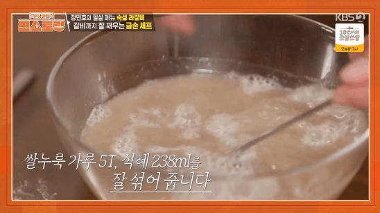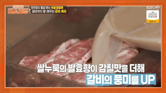 누룽지를 곁들인 매콤한 돼지갈비를 만들어 보겠습니다. 장민호씨의 비법 레시피를 담은 돼지갈비요리, 꼭 만들어보세요. - 이정현의 철판 누룽지 만들기 편스토랑, 이정현의 철판 누룽지 만들