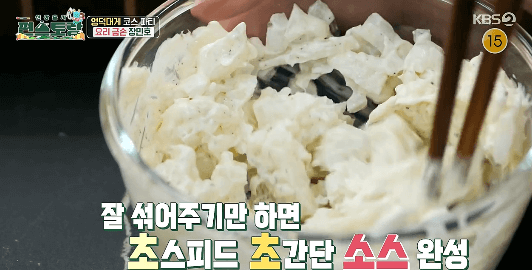 8. 마요네즈 5큰술과 순후추를 약간 넣고 섞어주면 완성입니다.