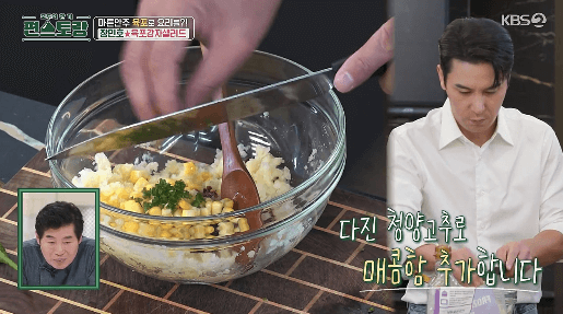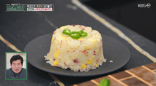 아래 버튼으로 장민호씨가 육포감자샐러드 만드는 과정을 영상으로 확인하세요.