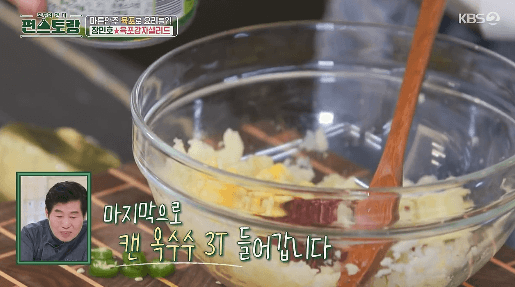 6. 캔 옥수수 3큰술을 넣고 골고루 섞어주면 완성입니다.