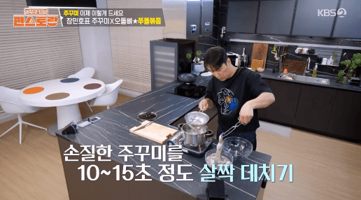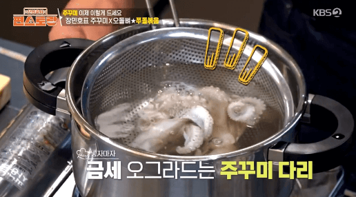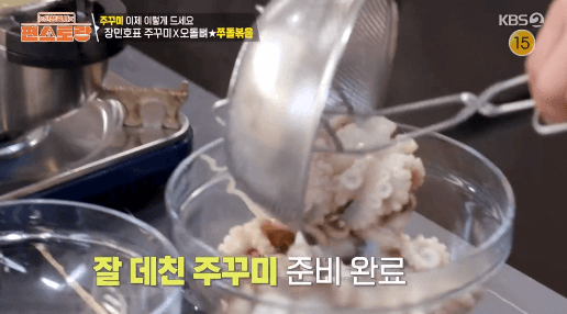 4. 냄비에 물을 끓이고, 주꾸미를 약 10~15초간 데쳐줍니다.