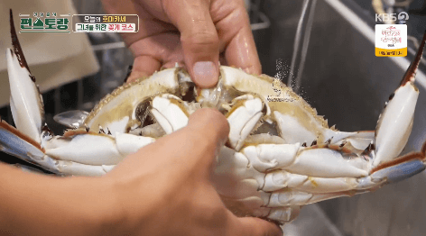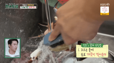 1. 꽃게 손질부터 합니다. 솔로 꽃게의 몸통과 다리 사이를 깨끗이 닦아줍니다.