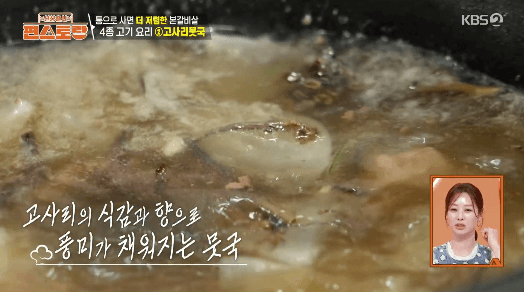 10. 썰어 놓은 고사리, 물 1.5리터를 넣고 뚜껑을 덮고, 20분 더 끓여줍니다.