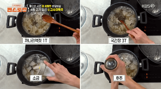11. 20분 뒤 까나리액젓 1큰술, 국간장 3큰술, 소금 1/2큰술, 후추 약간, 다진 마늘 1/2큰술을 넣고 중불에서 10분 끓여줍니다.