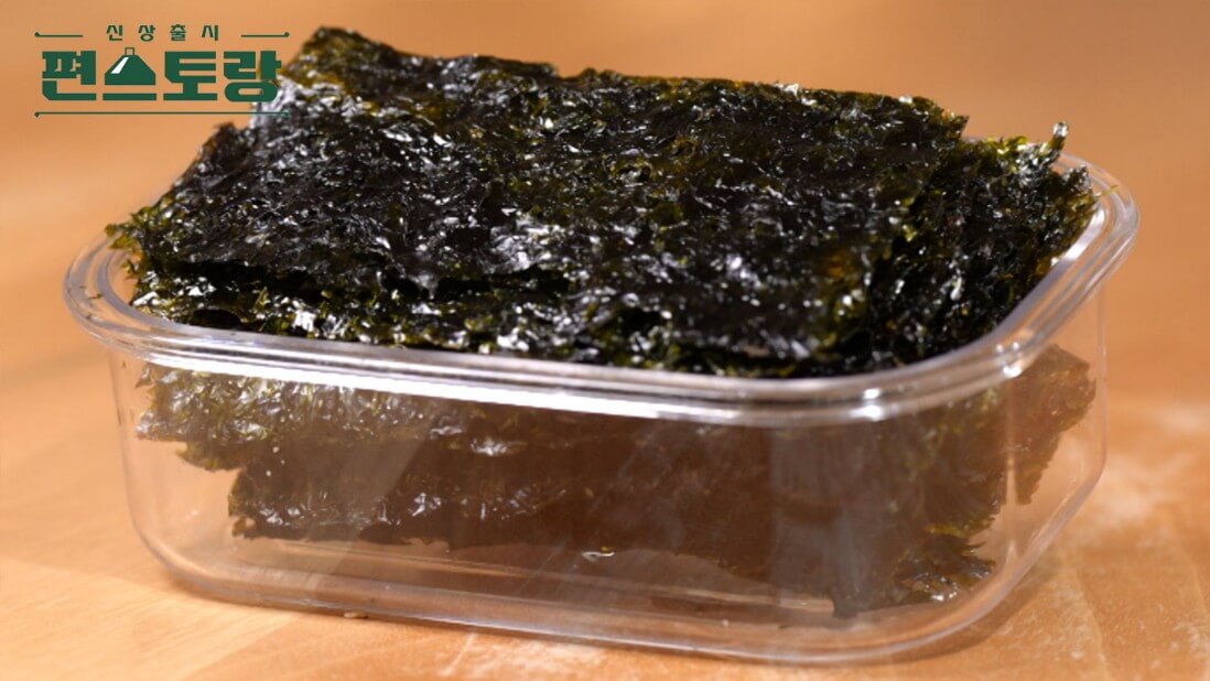 3. 예열된 팬에 김을 올리고 구워줍니다.