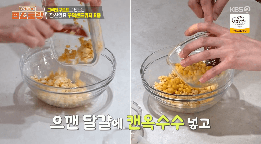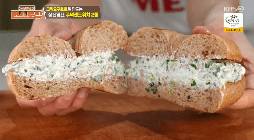 그릭요구르트를 사용해서 건강한 맛의 샌드위치를 만들어 보겠습니다. 달걀을 재료로 한 꾸덕 달걀샌드와 햄을 재료로 한 꾸덕 햄쪽파샌드입니다.