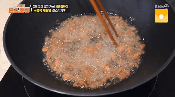 민물새우인 새뱅이를 튀겨 볼까요?! 진짜 천연 새우깡이 되겠네요.